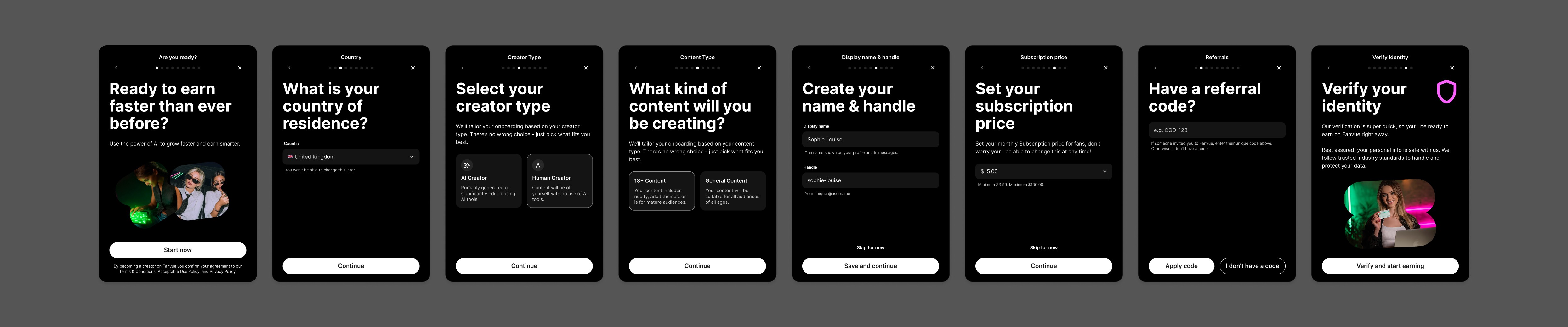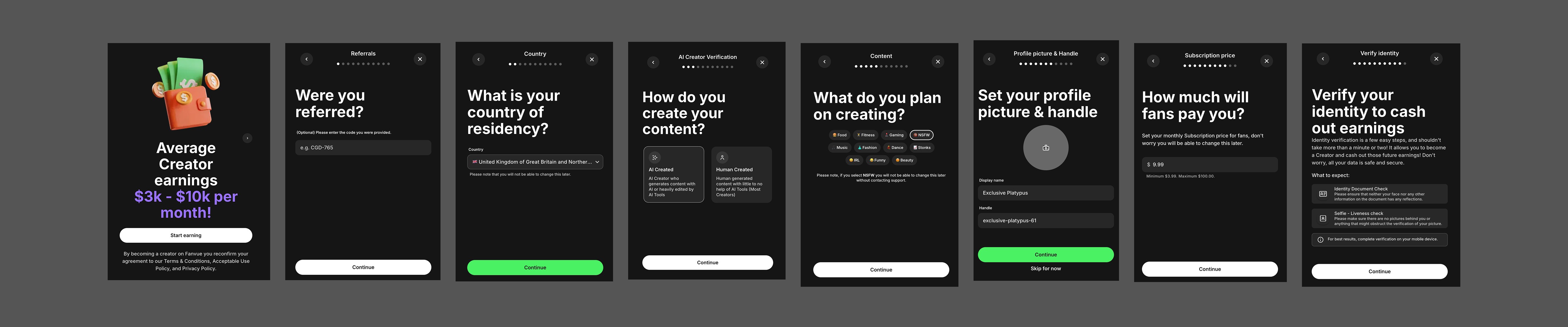 Becoming a creator is Fanvue’s most critical activation moment. The onboarding funnel showed significant drop-off across multiple steps, leading to lost creator supply and delayed monetization.